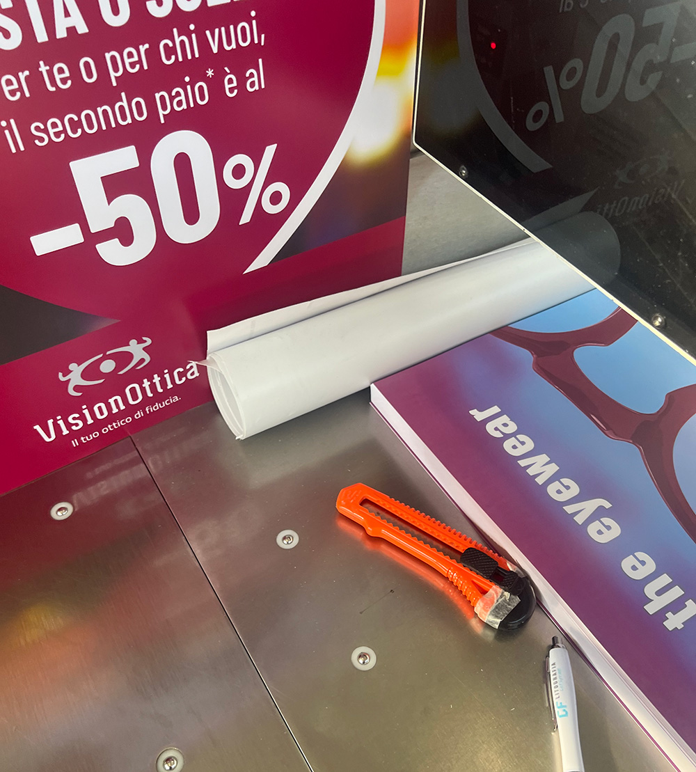 Offriamo servizi di installazione sul posto per garantire che i tuoi materiali stampati siano pronti a fare colpo in ogni occasione. Operiamo in tutto il nord Italia, allestendo con precisione e competenza negozi, stand fieristici ed eventi. Dalle vetrofanie ai fondali, dagli espositori ai pannelli, il nostro team esperto assicura un risultato impeccabile, curato in ogni dettaglio, per valorizzare al massimo la tua comunicazione visiva.